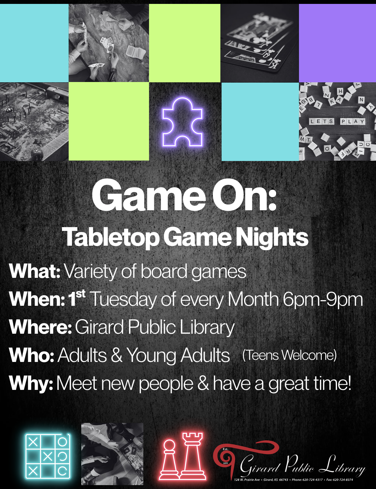 Join us for a fun social event at Girard Public Library on Tuesday, January 6th from 6:00 pm – 9:00 pm!