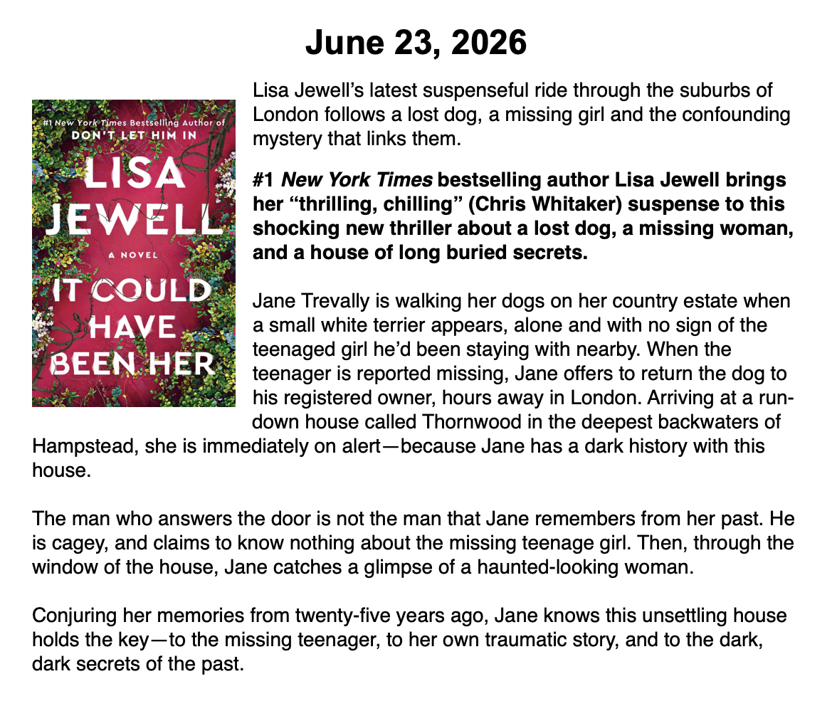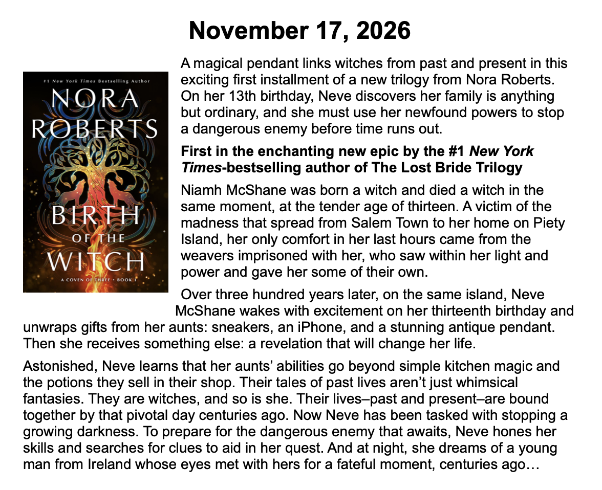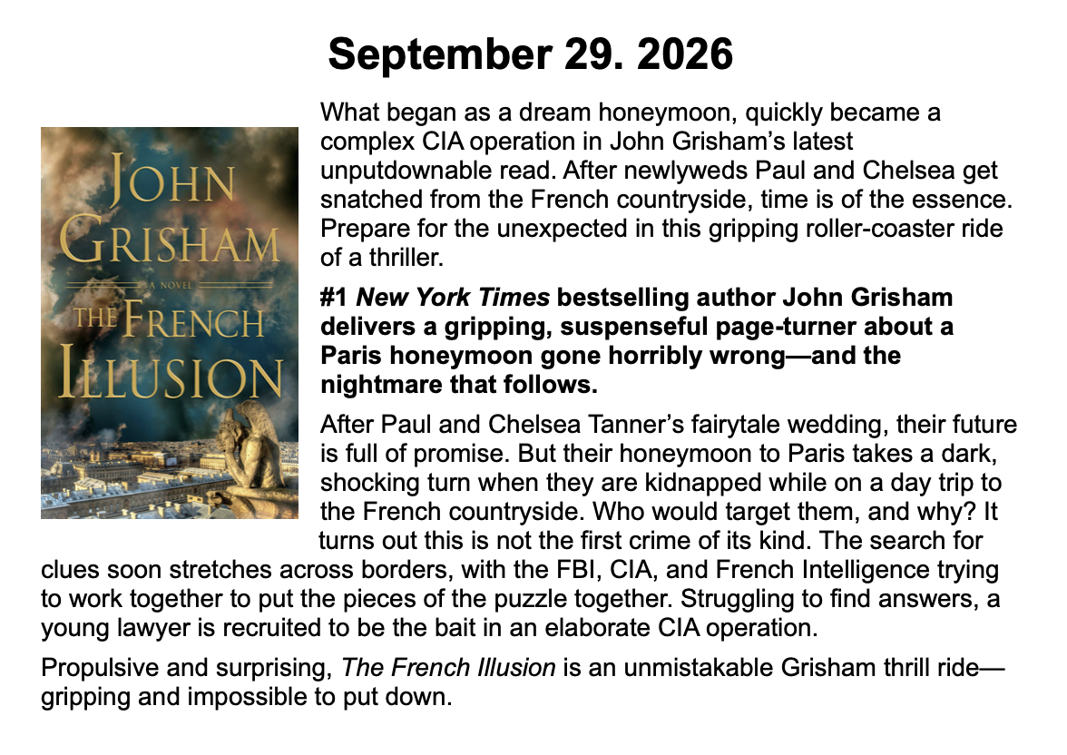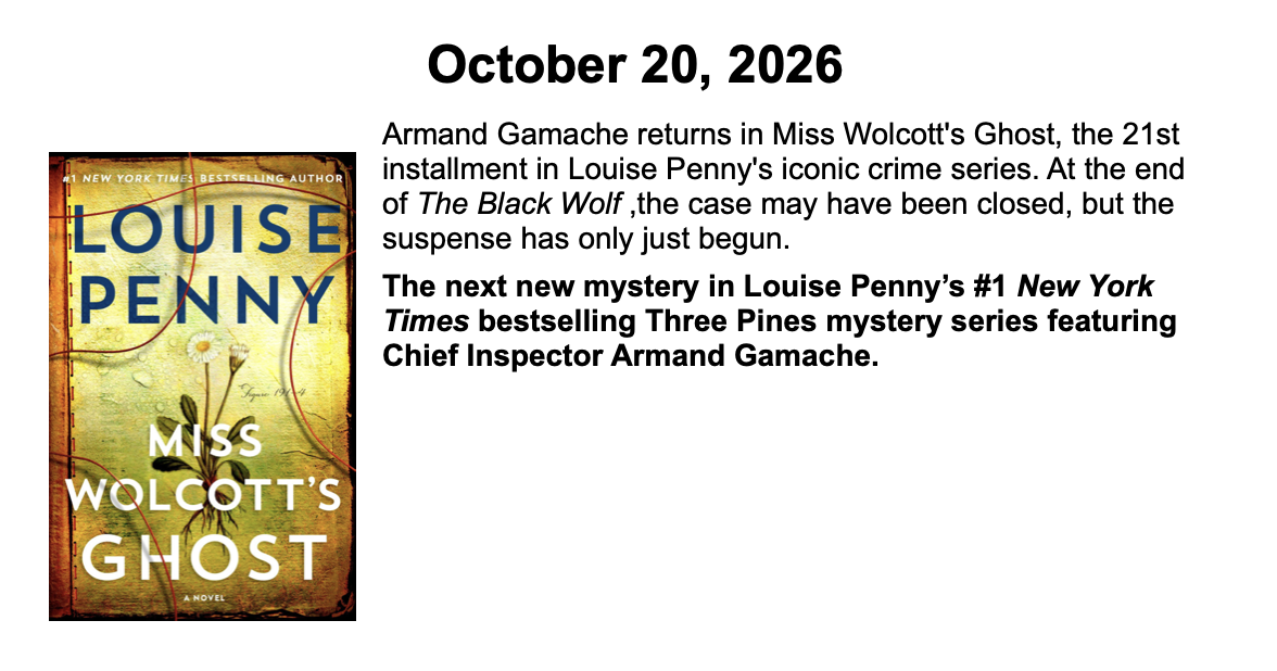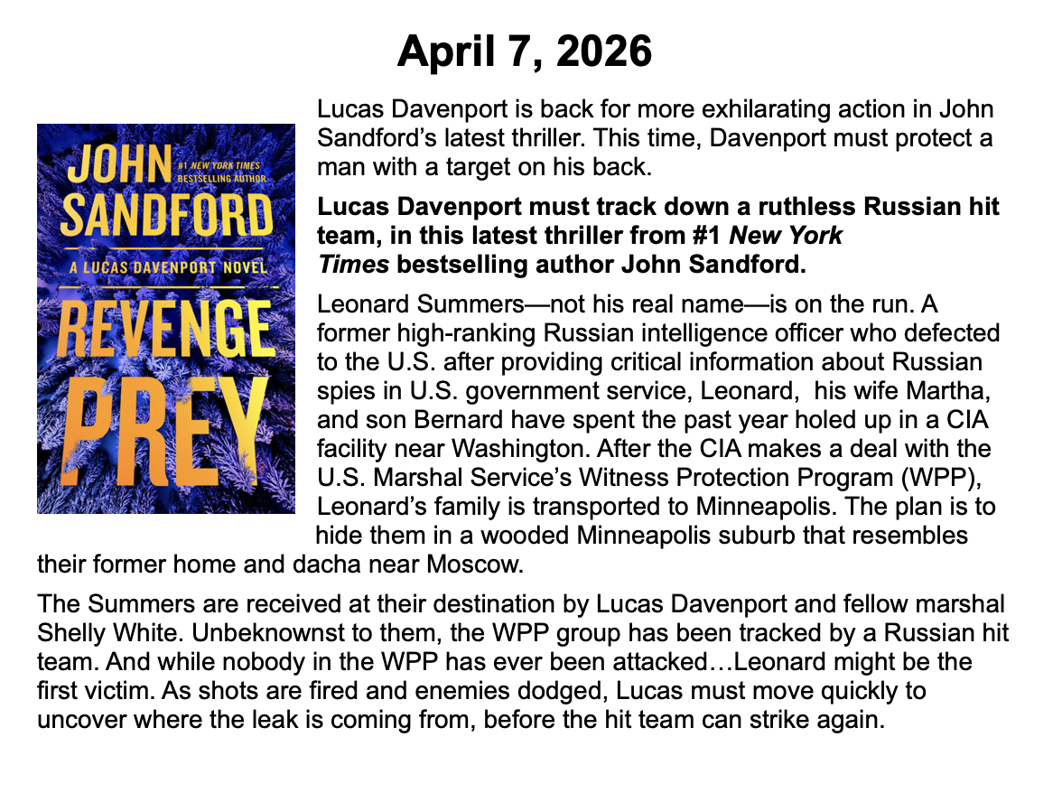 New Releases by Library-Admin-1 | Apr 6, 2026 | Adult Programs, Featured These books will be coming soon and are listed by their release dates. We won’t necessarily have these books in the library, but we can possibly get them from another library.