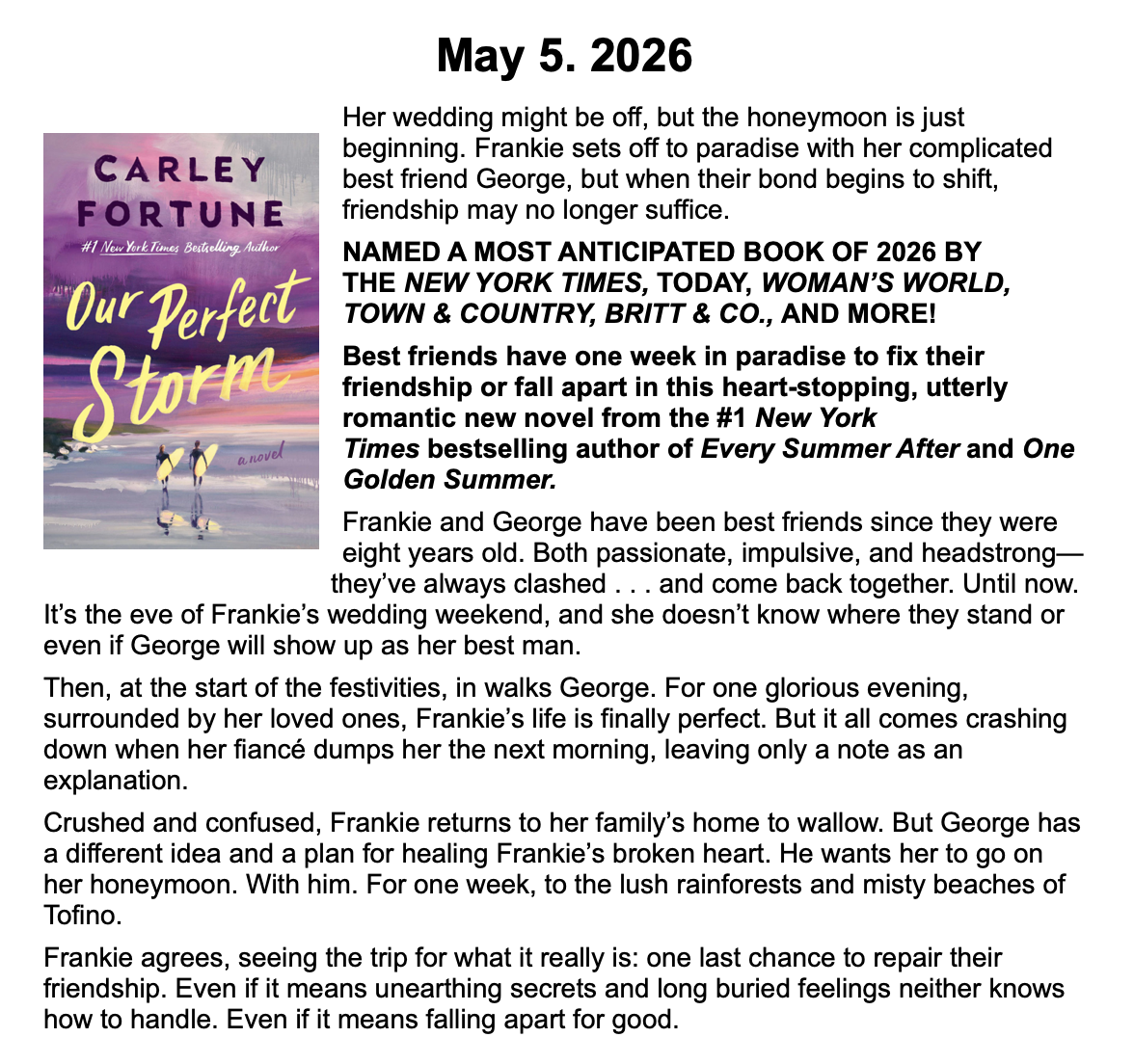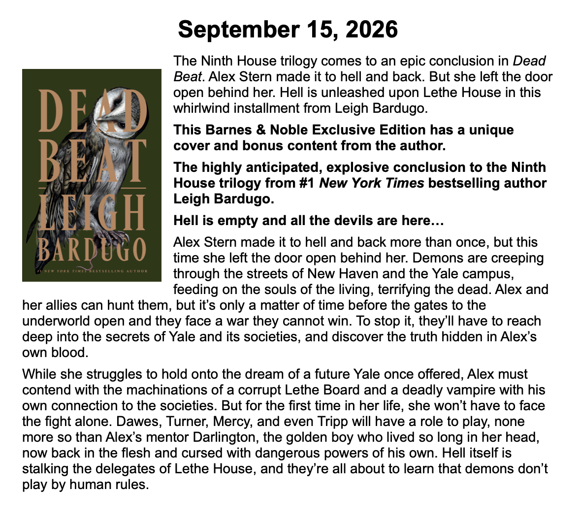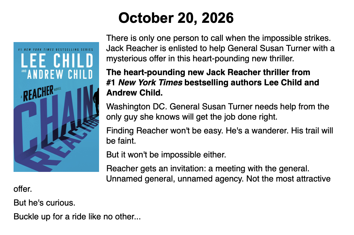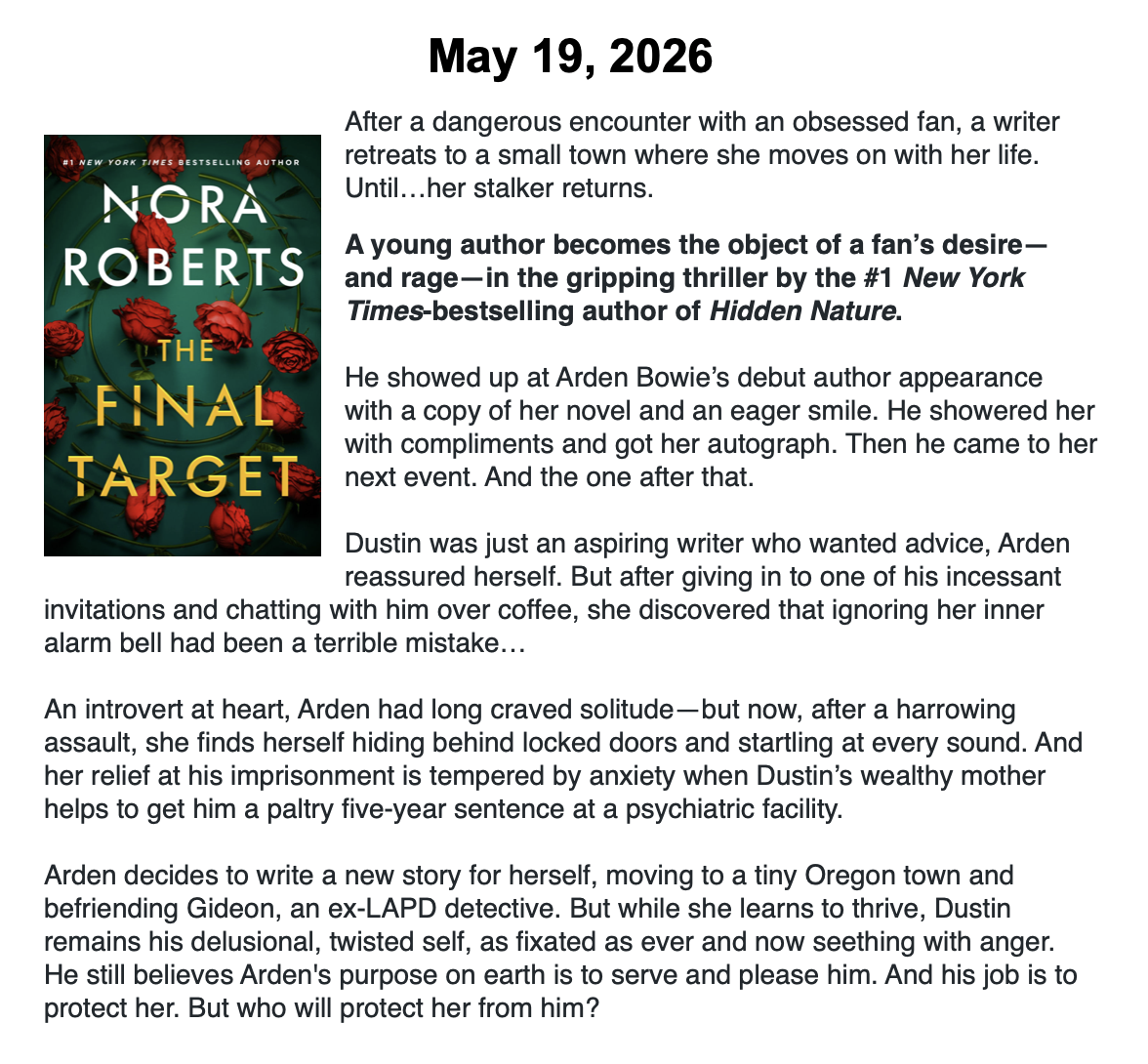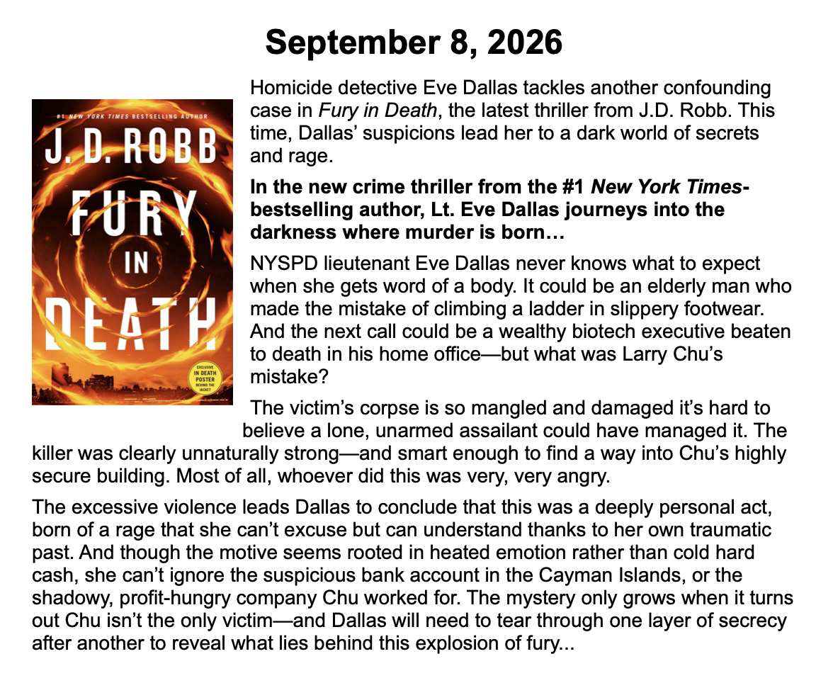 New Releases by Library-Admin-1 | Apr 6, 2026 | Adult Programs, Featured These books will be coming soon and are listed by their release dates. We won’t necessarily have these books in the library, but we can possibly get them from another library.