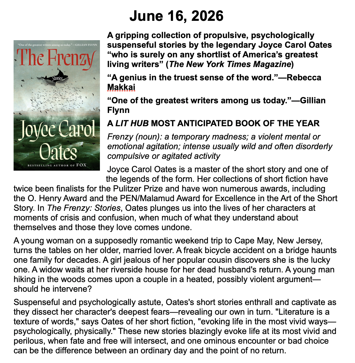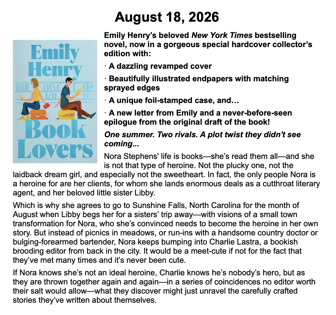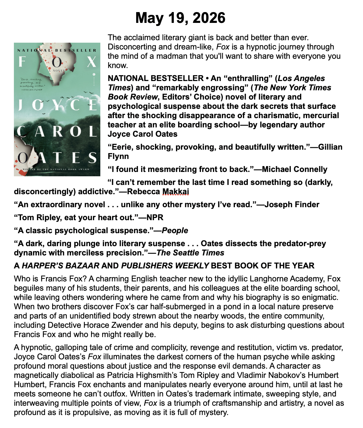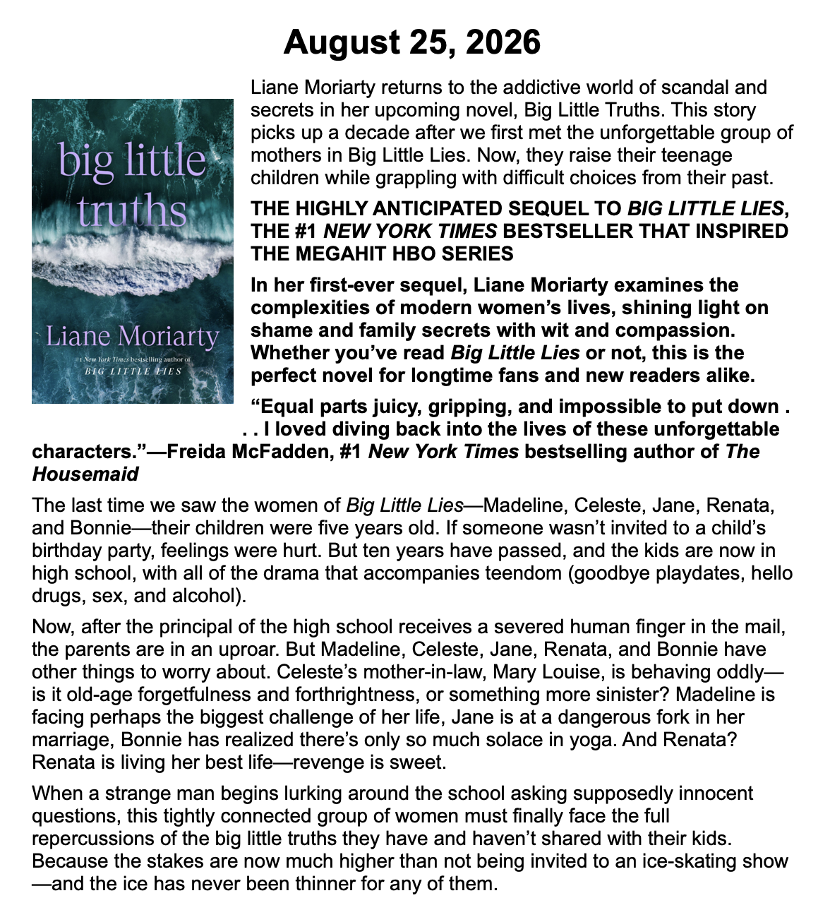 New Releases by Library-Admin-1 | Apr 6, 2026 | Adult Programs, Featured These books will be coming soon and are listed by their release dates. We won’t necessarily have these books in the library, but we can possibly get them from another library.
